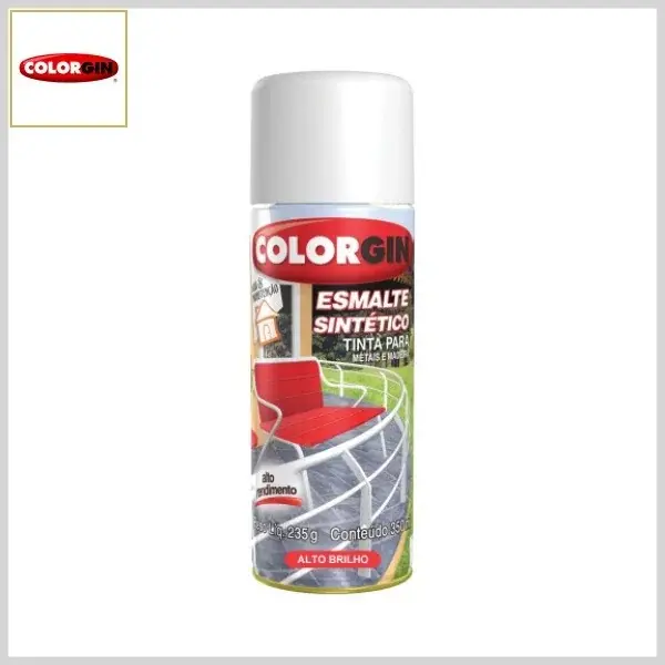 COLORGIN ESMALTE SINTÉTICO é uma tinta em spray resistente às intempéries, com excelente acabamento, alto rendimento, secagem rápida e fácil aplicação.