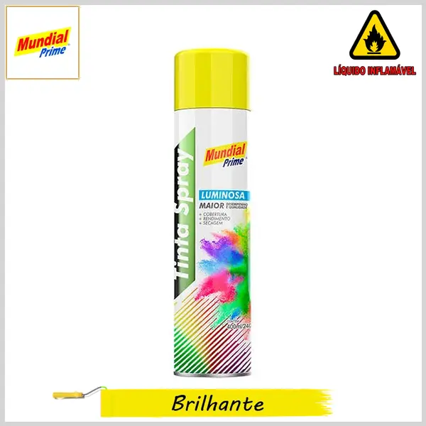 Tinta Spray Luminosa, Brilhante 400ml_240g - Amarelo - Mundial Prime