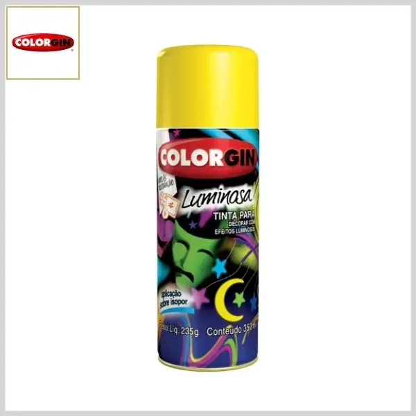 COLORGIN LUMINOSA é uma tinta acrílica em spray, com uma bela seleção de cores, que proporciona um efeito luminoso com a incidência da luz. É indicada para uso interno e pode ser usada na decoração de vitrines, salões, artesanatos, etc.