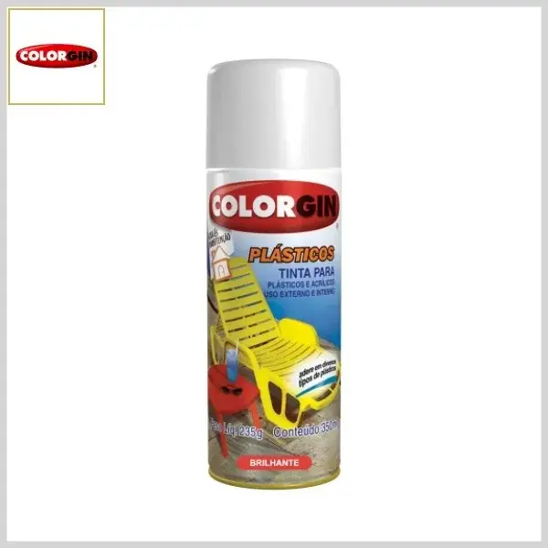 COLORGIN PLÁSTICOS é uma tinta em spray com alta tecnologia, que proporciona total e permanente aderência, dispensando o uso de primer ou fundo especial. Pode ser usado em superfícies externas e internas.