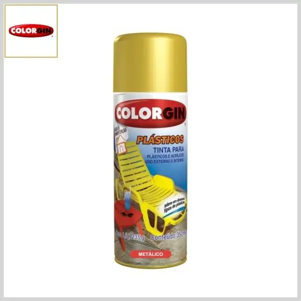 COLORGIN PLÁSTICOS é uma tinta em spray com alta tecnologia, que proporciona total e permanente aderência, dispensando o uso de primer ou fundo especial. Pode ser usado em superfícies externas e internas.
