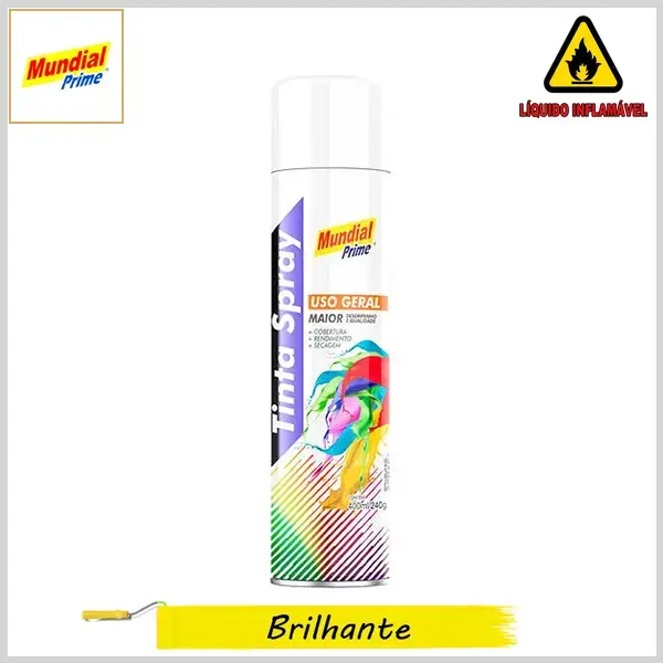Tinta Spray Uso Geral, Brilhante 400ml_240g - Branco - Mundial Prime