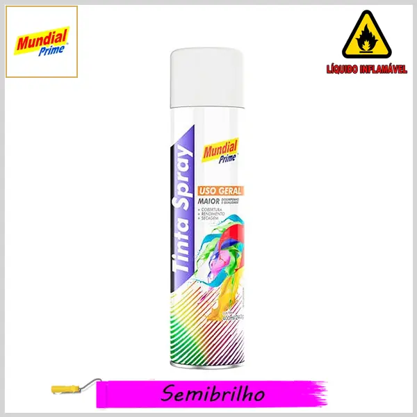Tinta Spray Uso Geral, Semibrilho 400ml_240g - Branco - Mundial Prime