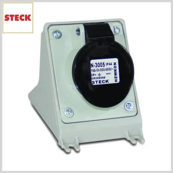 A linha Newkon de plugues e tomadas industriais da Steck assegura grande flexibilidade para os sistemas de instalações industriais. Com desenho simplificado, apresenta robustez e excelente grau de proteção. De corpo plástico poliamida, com vedações em neoprene e contatos em latão maciço, é indicada para todo tipo de instalação elétrica industrial. Disponíveis em 3, 4, e 5 polos com correntes entre 16 até 63 ampéres.
