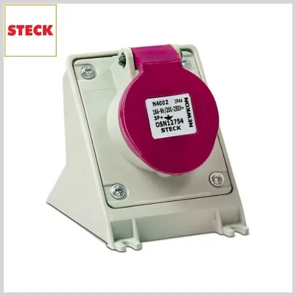 A linha Newkon de plugues e tomadas industriais da Steck assegura grande flexibilidade para os sistemas de instalações industriais. Com desenho simplificado, apresenta robustez e excelente grau de proteção. De corpo plástico poliamida, com vedações em neoprene e contatos em latão maciço, é indicada para todo tipo de instalação elétrica industrial. Disponíveis em 3, 4, e 5 polos com correntes entre 16 até 63 ampéres.