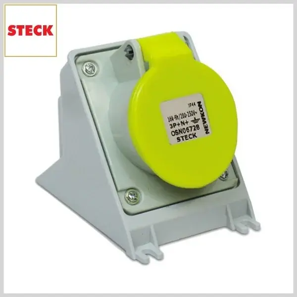 A linha Newkon de plugues e tomadas industriais da Steck assegura grande flexibilidade para os sistemas de instalações industriais. Com desenho simplificado, apresenta robustez e excelente grau de proteção. De corpo plástico poliamida, com vedações em neoprene e contatos em latão maciço, é indicada para todo tipo de instalação elétrica industrial. Disponíveis em 3, 4, e 5 polos com correntes entre 16 até 63 ampéres.