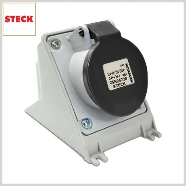 A linha Newkon de plugues e tomadas industriais da Steck assegura grande flexibilidade para os sistemas de instalações industriais. Com desenho simplificado, apresenta robustez e excelente grau de proteção. De corpo plástico poliamida, com vedações em neoprene e contatos em latão maciço, é indicada para todo tipo de instalação elétrica industrial. Disponíveis em 3, 4, e 5 polos com correntes entre 16 até 63 ampéres.