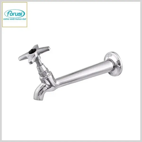 Torneira de Cozinha 1158 C-23 M18 Parede Longa Cromado - Saída s/Arejador, Volante Metal - Forusi