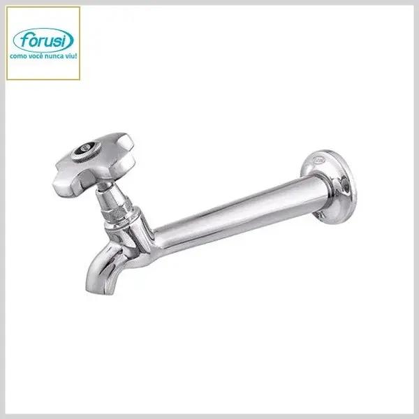 Torneira de Cozinha 1158 C-39 M18 Parede Longa Cromado - Saída s/Arejador, Volante Metal - Forusi