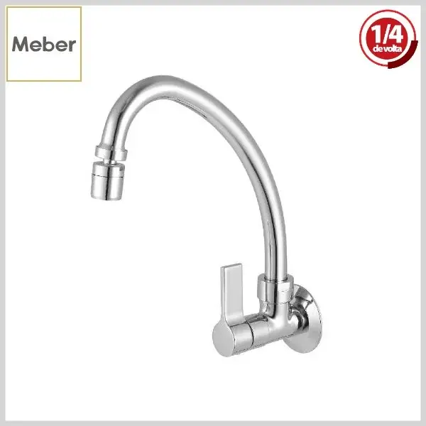 Torneira de Cozinha 1165 C-36 Atria 1/4Volta Parede Bica Móvel-BJ Cromado - Arejador Móvel, Volante Metal - Meber
