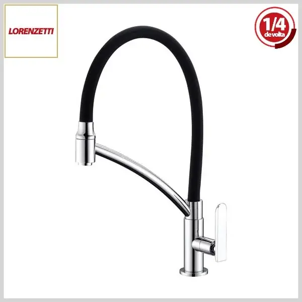 Torneira de Cozinha 1167 C81 LorenChef Mesa Bica Móvel Preto c/Cromado - Vedação ¼Volta, Saída c/Arejador - Lorenzetti