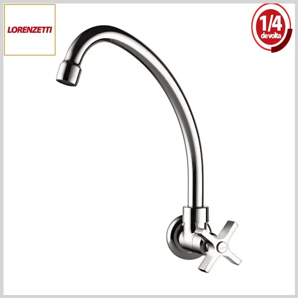 Torneira de Cozinha 1168 C47 LorenClub Parede Bica Móvel Cromado - Vedação ¼Volta, Saída c/Arejador - Lorenzetti