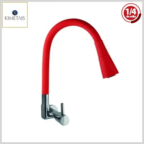 Torneira de Cozinha 1168 C58 Vitacor DuoJet DelicattaSlim Parede Bica Flexível 1/4Volta Red/Cromado - Jato Regulável, Volante Metal - Kimetais