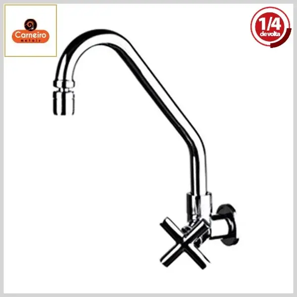 Torneira de Cozinha 1169 C64 Border Parede Bica Alta Móvel 1/4Volta Cromado - Arejador Móvel, Volante Metal - Carneiro Metais