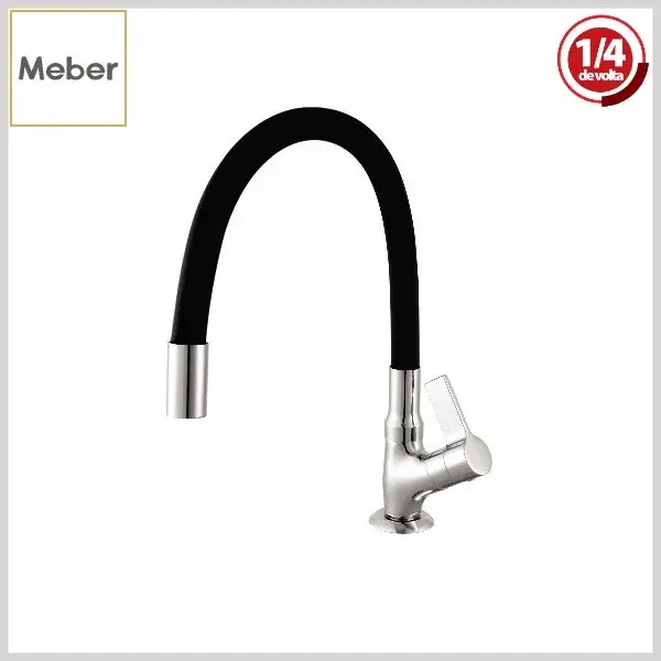 Torneira de Cozinha 1173 C-36 Atria 1/4Volta Bancada Bica Moldável Preto +Cromado - Arejador Fixo, Volante Metal - Meber