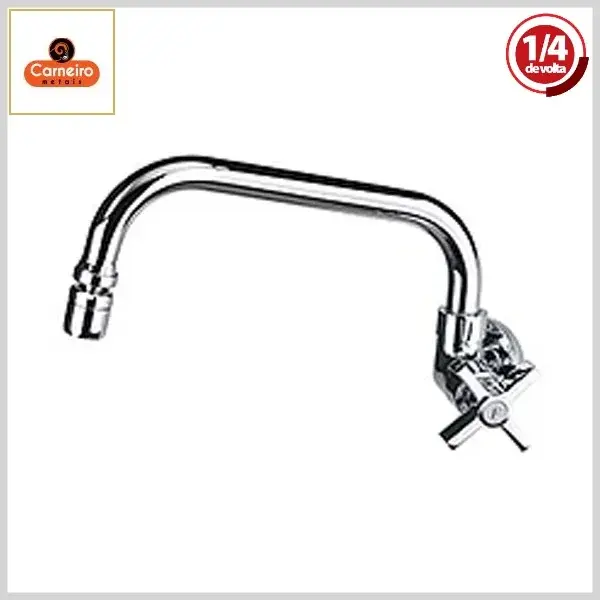 Torneira de Cozinha 1179 C55 Royal Parede Bica U Móvel 1/4Volta Cromado - Arejador Móvel, Volante Metal - Carneiro Metais