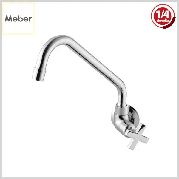 Torneira de Cozinha 1183 C-22 Nya 1/4Volta Parede Bica Móvel-BA Cromado - Arejador Fixo, Volante Metal - Meber
