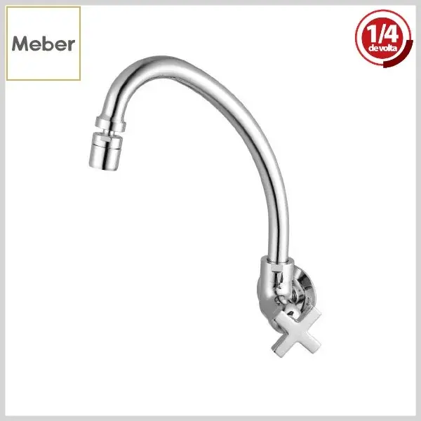 Torneira de Cozinha 1187 C-22 Nya 1/4Volta Parede Bica Móvel-BJ Cromado - Arejador Móvel, Volante Metal - Meber