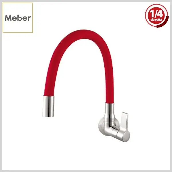 Torneira de Cozinha 1187 C-36 Atria 1/4Volta Parede Bica Moldável Vermelho +Cromado - Arejador Fixo, Volante Metal - Meber