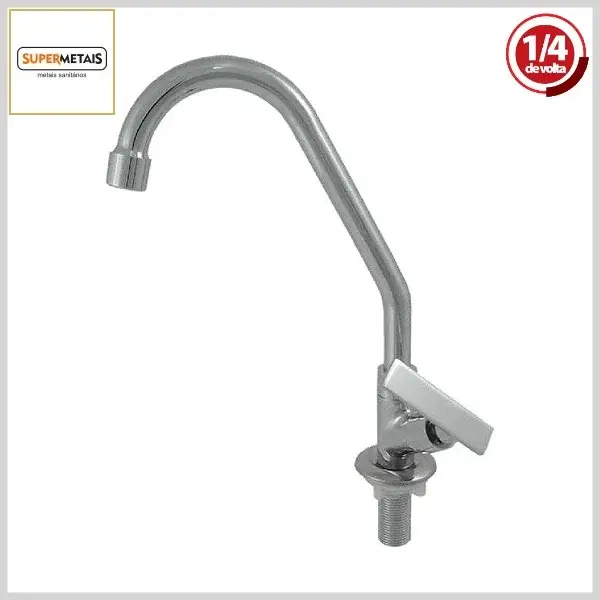 Produto com corpo e volante em metal cromado, sendo indicado para uso em pias de cozinhas, churrasqueiras e similares. Possui entrada em 1/2" e sistema de vedação 1/4Volta Mvc cerâmico.