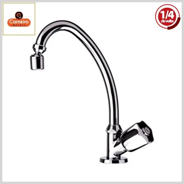 Torneira de Cozinha 2021 C50 Bergamo Mesa Bica Alta Móvel 1/4Volta Cromado - Arejador Móvel, Volante Metal - Carneiro Metais