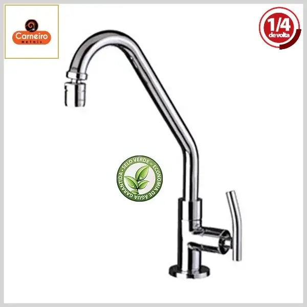 Torneira de Cozinha 2022 C62 Boer Mesa Bica Alta Móvel 1/4Volta Cromado - Arejador Móvel, Volante Metal - Carneiro Metais