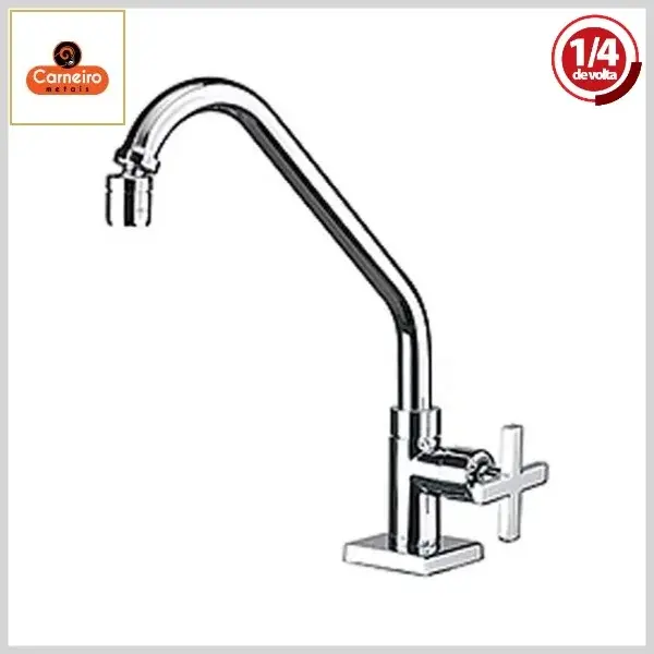 Torneira de Cozinha 2024 C56 Bovska Mesa Bica Alta Móvel 1/4Volta Cromado - Arejador Móvel, Volante Metal - Carneiro Metais