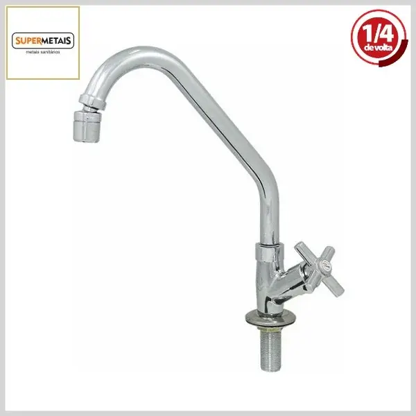 Produto com corpo e volante em metal cromado, sendo indicado para uso em pias de cozinhas, churrasqueiras e similares. Possui entrada em 1/2" e sistema de vedação 1/4Volta Mvc cerâmico.