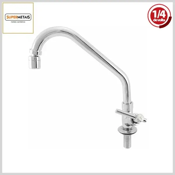 Torneira de Cozinha 2025 C34 Met Mesa Bica Móvel Cromada - Vedação ¼Volta, Arejador Movel - Supermetais
