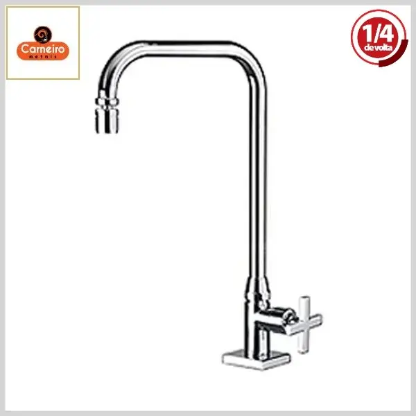 Torneira de Cozinha 2027 C56 Bovska Mesa Bica 90º Móvel 1/4Volta Cromado - Arejador Móvel, Volante Metal - Carneiro Metais
