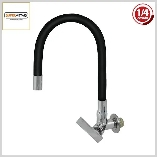Torneira de Cozinha 2040 C29 Color Parede Bica Flexível Preta/Cromada - Vedação ¼Volta, Saída c/Arejador - Supermetais