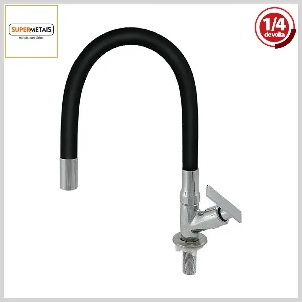 Torneira de Cozinha 2050 C29 Color Mesa Bica Flexível Preta/Cromada - Vedação ¼Volta, Saída c/Arejador - Supermetais