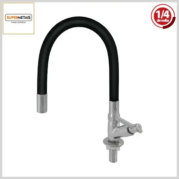 Torneira de Cozinha 2050 C34 Color Mesa Bica Flexível Preta/Cromada - Vedação ¼Volta, Saída c/Arejador - Supermetais