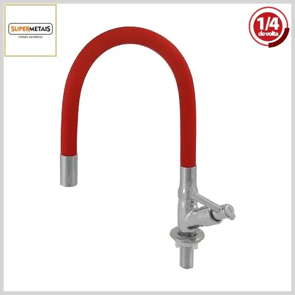 Torneira de Cozinha 2050 C34 Color Mesa Bica Flexível Vermelha/Cromada - Vedação ¼Volta, Saída c/Arejador - Supermetais