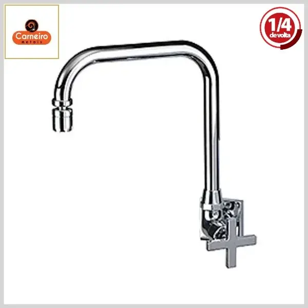 Torneira de Cozinha 2167 C56 Bovska Parede Bica 90º Móvel 1/4Volta Cromado - Arejador Móvel, Volante Metal - Carneiro Metais