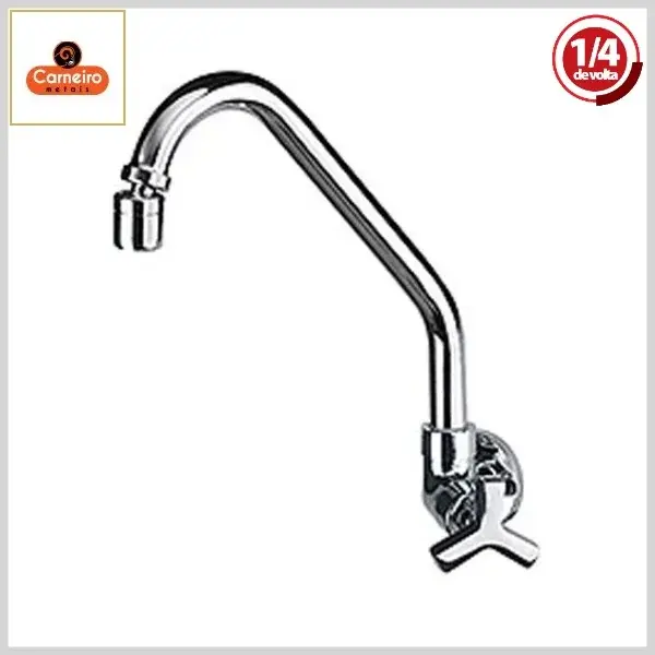Torneira de Cozinha 2169 C25 Yunnan Parede Bica Alta Móvel 1/4Volta Cromado - Arejador Móvel, Volante Metal - Carneiro Metais