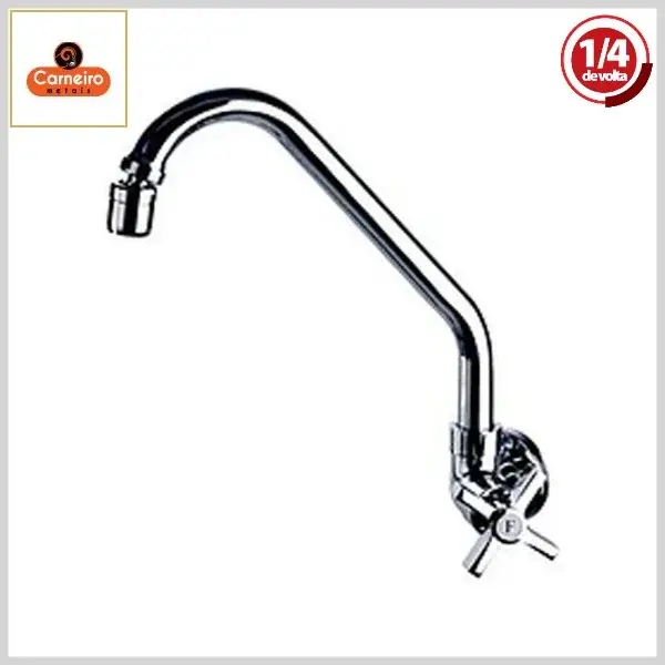 Torneira de Cozinha 2169 C55 Royal Parede Bica Alta Móvel 1/4Volta Cromado - Arejador Móvel, Volante Metal - Carneiro Metais