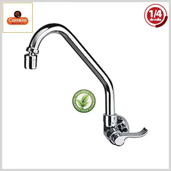 Torneira de Cozinha 2169 C66 Cheviot Parede Bica Alta Móvel 1/4Volta Cromado - Arejador Móvel, Volante Metal - Carneiro Metais