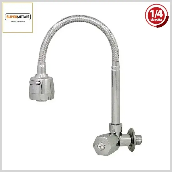 Torneira de Cozinha 3010 C50 Gourmet Parede Bica Flexível Cromada - Vedação ¼Volta, Saida c/Regulador - Supermetais