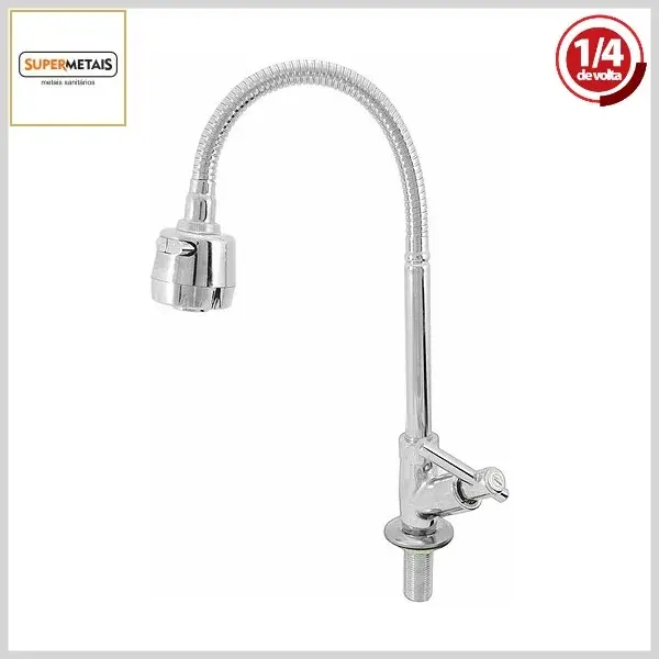 Torneira de Cozinha 3015 C34 Gourmet Mesa Bica Flexível Cromada - Vedação ¼Volta, Saida c/Regulador - Supermetais