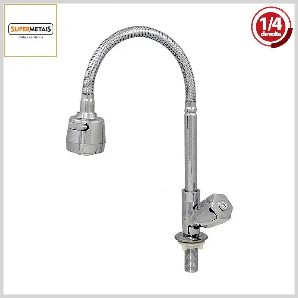 Torneira de Cozinha 3015 C50 Gourmet Mesa Bica Flexível Cromada - Vedação ¼Volta, Saida c/Regulador - Supermetais