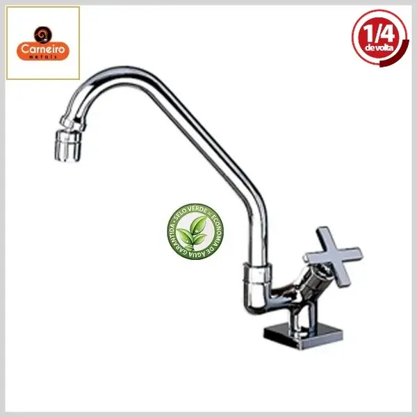 Torneira de Cozinha 3024 C56 Bovska Mesa Bica Alta Móvel 1/4Volta Cromado - Arejador Móvel, Volante Metal - Carneiro Metais