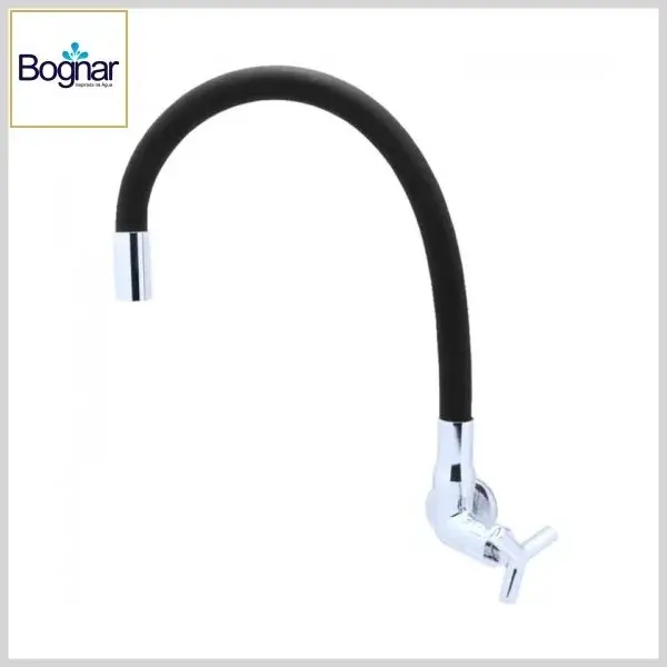 Torneira de Cozinha 3068-C55 PremiumColor Parede Bica Flexível Preto/Cromado - Vedação ¼Volta, Saída c/Arejador - Bognar