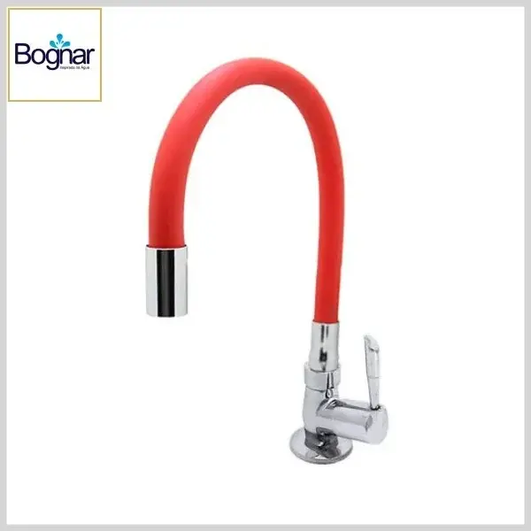 Torneira de Cozinha 3069-C61 PremiumColor Mesa Bica Flexível Vermelho/Cromado - Vedação ¼Volta, Saída c/Arejador - Bognar