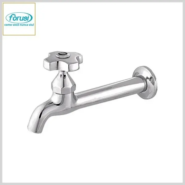 Torneira de Cozinha 3158 C-39 M18 Parede Longa Cromado - Saída s/Arejador, Volante Metal - Forusi