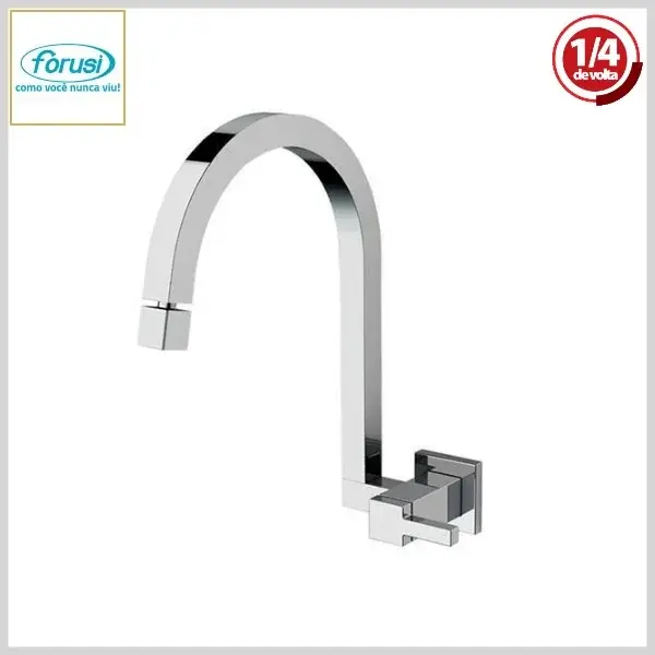 Torneira de Cozinha 3159 Bauhaus 1/4Volta Parede Bica Alta Cromado - Arejador Móvel, Volante Metal - Forusi