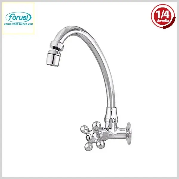 Torneira de Cozinha 3159 BelleEpoque 1/4Volta Luxo Parede Bica Móvel Cromado - Arejador Móvel, Volante Metal - Forusi