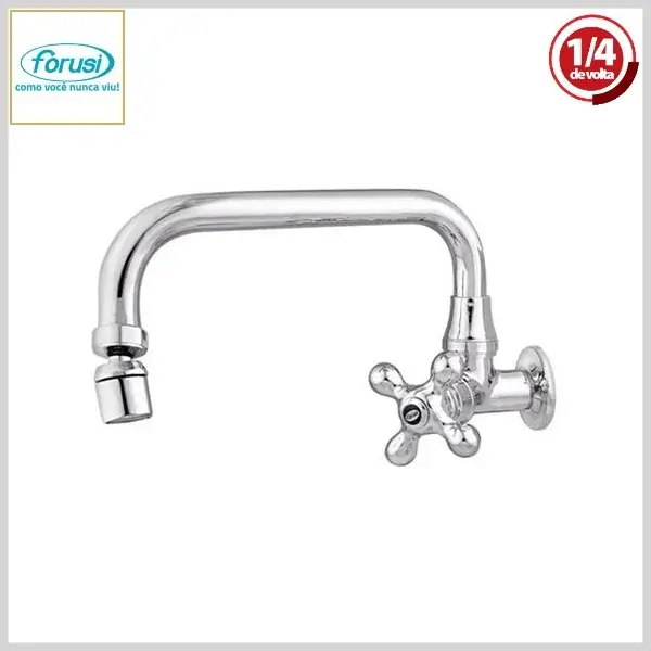 Torneira de Cozinha 3159 BelleEpoque 1/4Volta Luxo Parede Bica Móvel-U Cromado - Arejador Móvel, Volante Metal - Forusi
