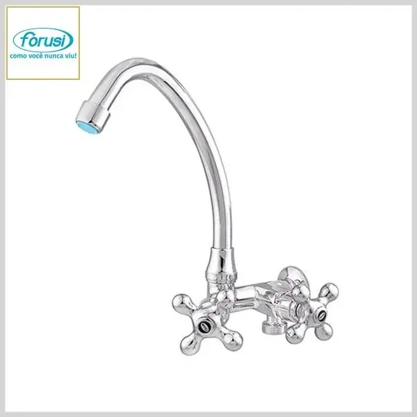 Torneira de Cozinha 3159 BelleEpoque Mvs Luxo Parede Bica Móvel Cromado c/Saída LavaLouças - Arejador Fixo, Volante Metal - Forusi