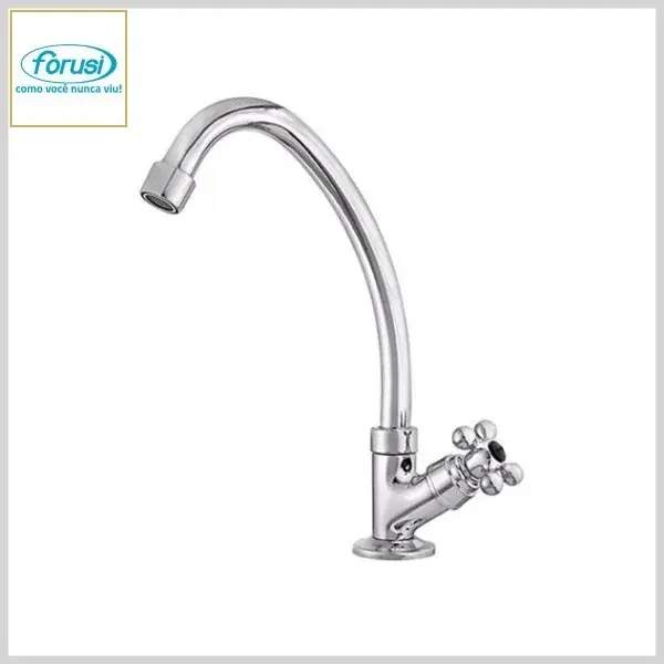 Torneira de Cozinha 3159 C-33 Mvs Mesa Bica Móvel Cromado - Arejador Fixo, Volante Metal - Forusi